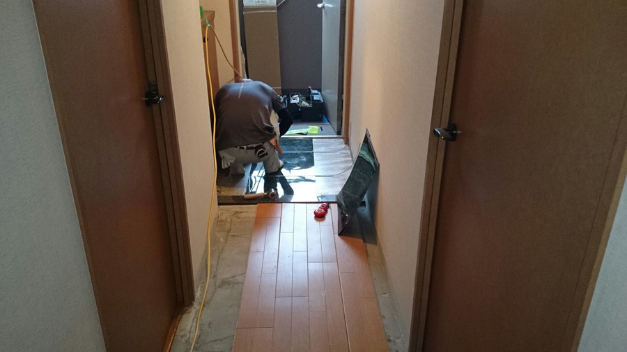 クロス天井、壁貼り替えと床もフローリングへ。